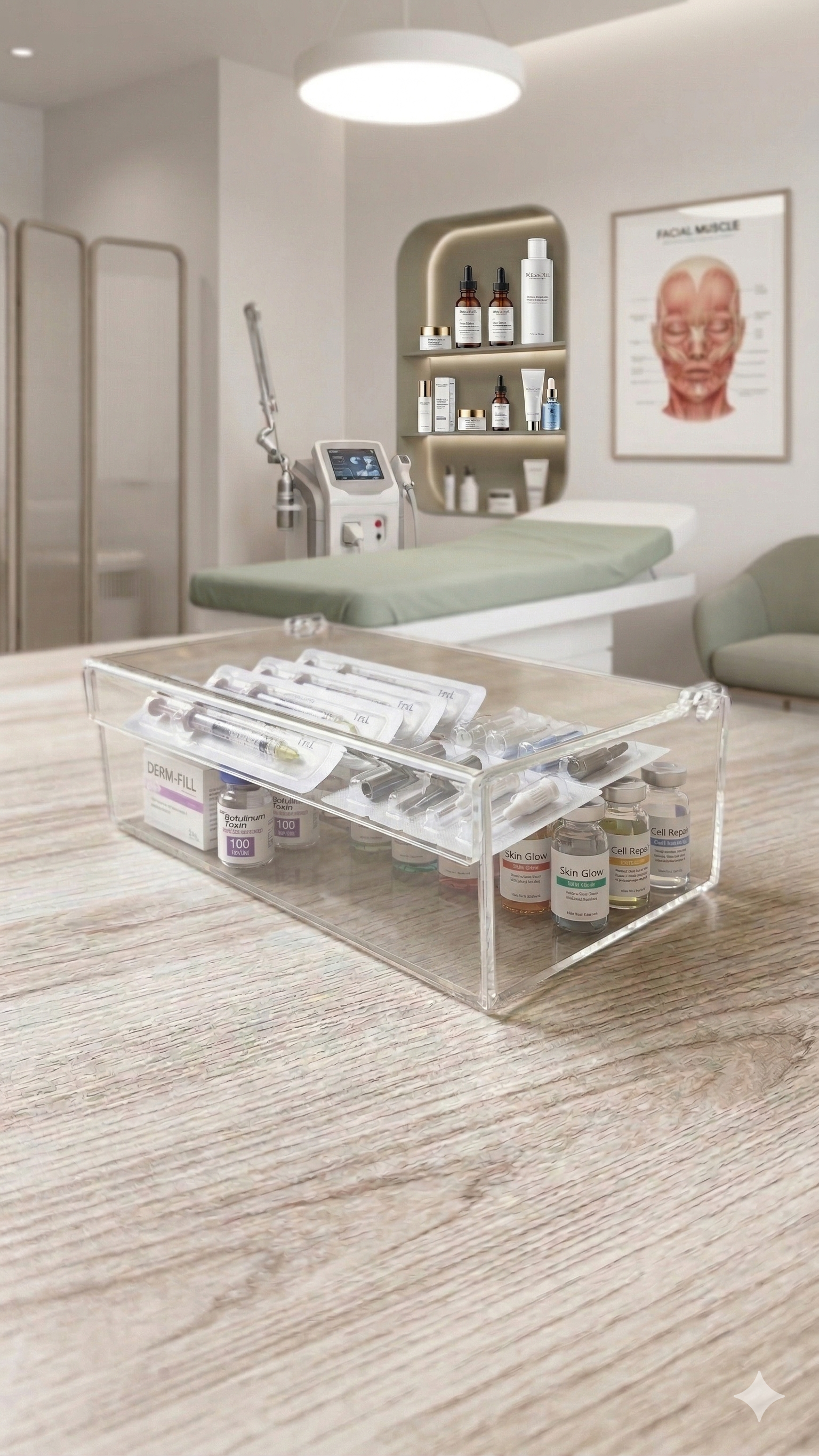 A Caixa Organizadora em Acrílico Cristal ProCare foi desenvolvida para manter seus itens organizados, protegidos e sempre visíveis, contribuindo para uma bancada mais limpa, funcional e profissional.