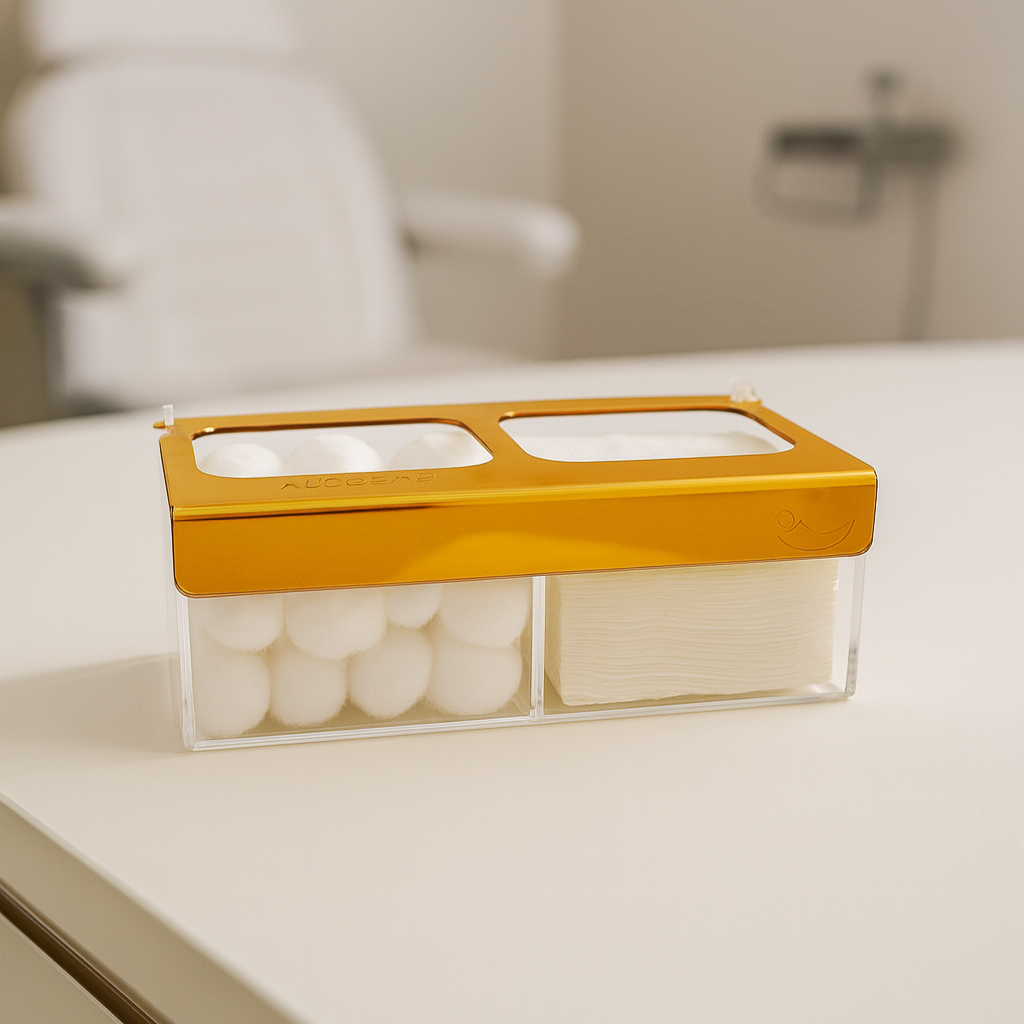 Com dois compartimentos independentes, ele permite separar algodão e gaze de forma prática, facilitando o acesso durante os procedimentos e contribuindo para um fluxo mais ágil e organizado.